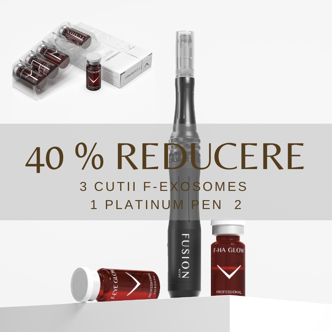 Pachetul contine 3 cutii de F-EXOSOMES (5×5 ml) si un dispozitiv Platinum Pen 2.
